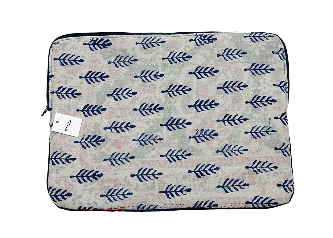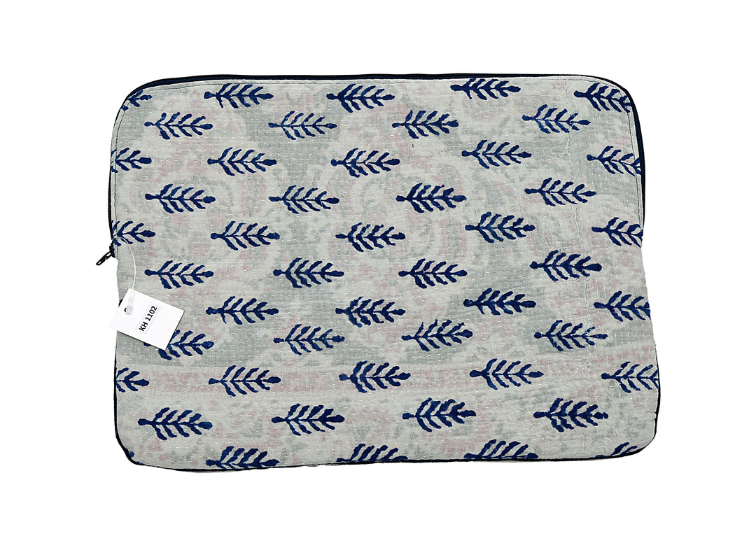 Funda para portátil Kantha con estampado de bloques – Diseño de hojas azul marino
