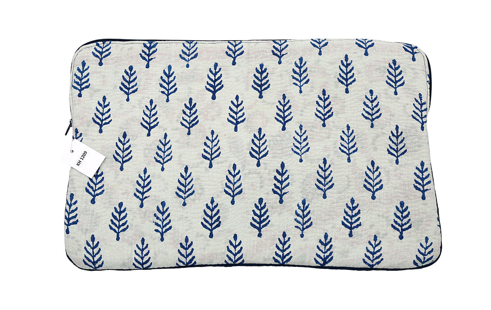 Funda para portátil Sari reutilizada: color crema suave con motivo de árbol azul marino