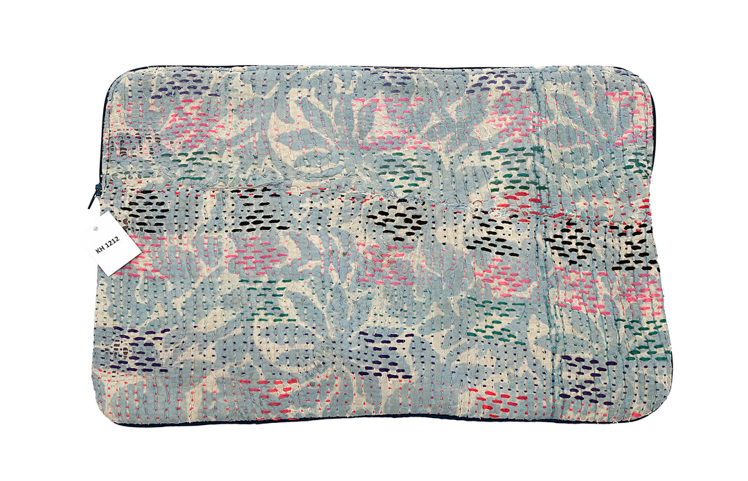 Funda para portátil Sari reutilizada: diseño floral pastel con puntada Kantha arcoíris