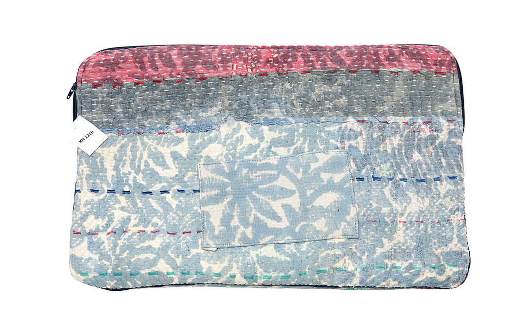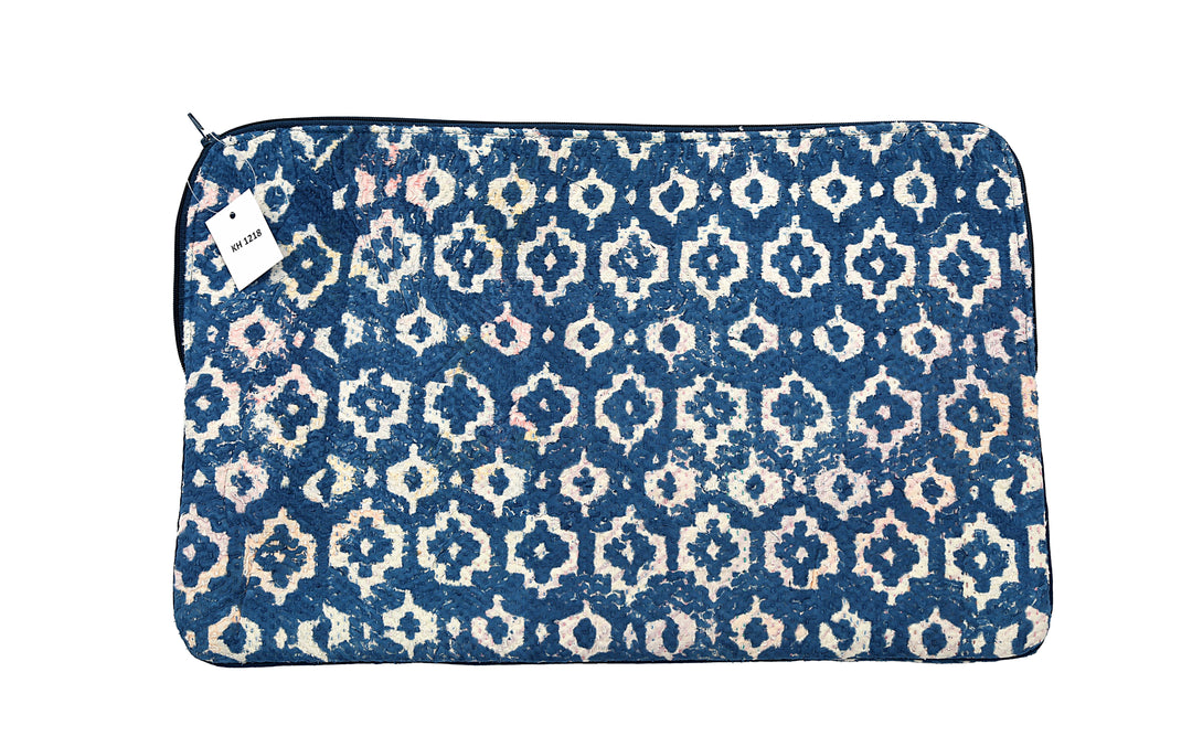 Funda para portátil Sari reutilizada: estampado de bloques índigo con detalles en rosa