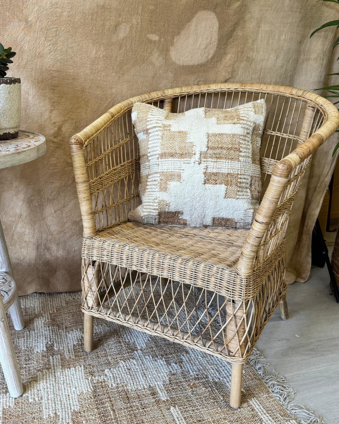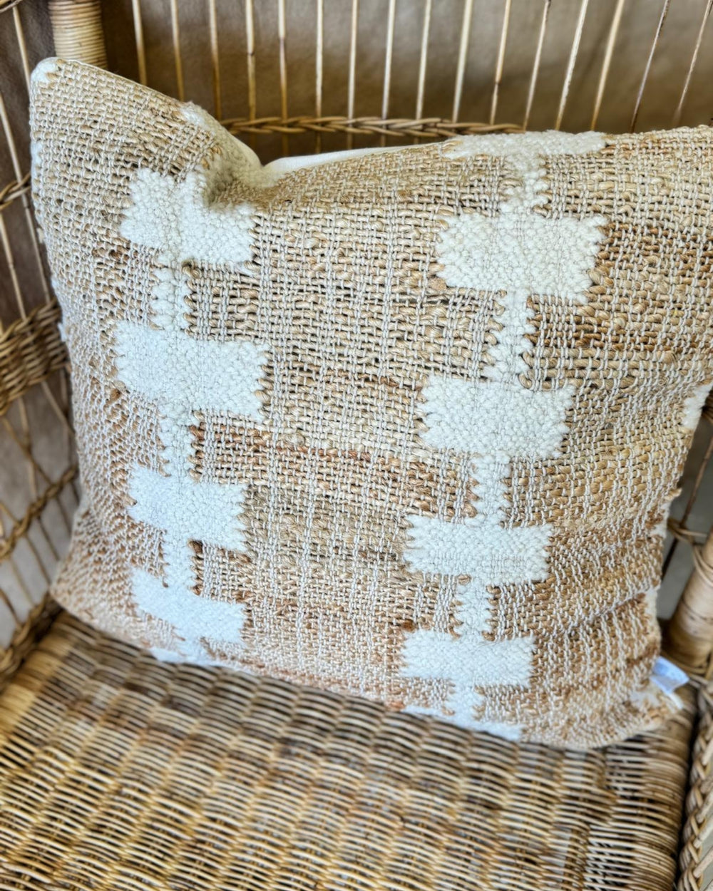 Funda de cojín de yute y bouclé tejida a mano – Natural y crema