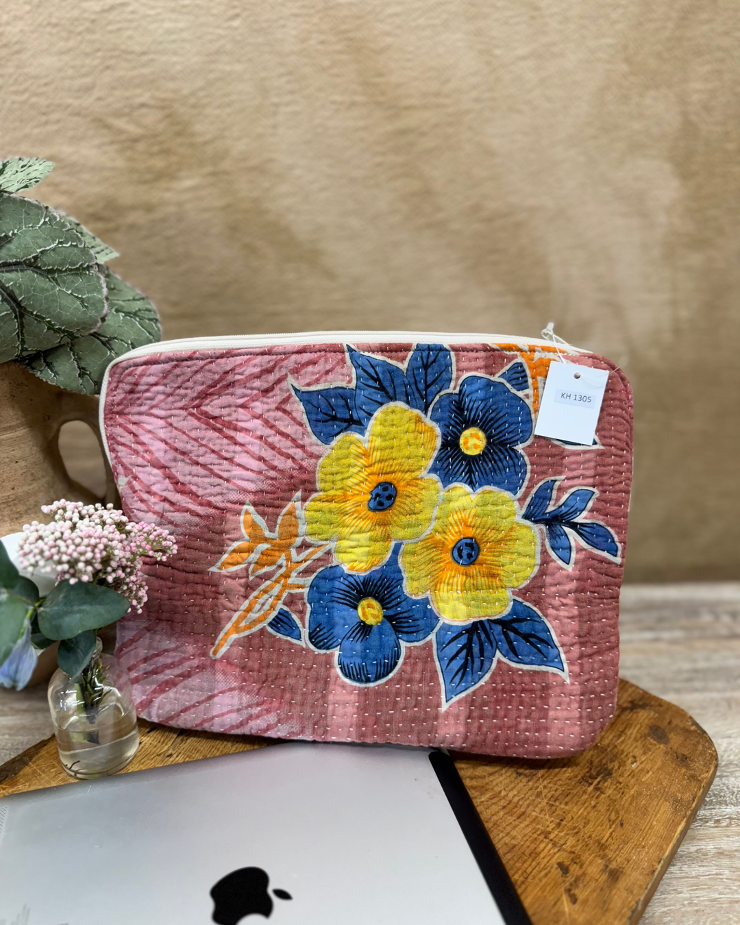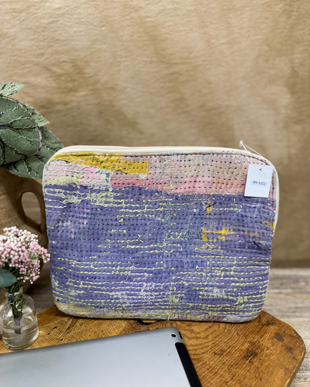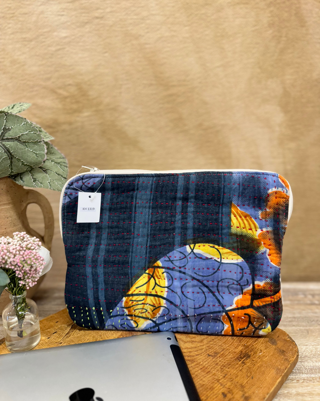 Cuidadosamente elaboradas a mano por hábiles artesanos en la India con técnicas tradicionales de estilo Kantha, estas fundas combinan la artesanía práctica con el arte tradicional. Ya sea para una laptop, una tableta o un lector electrónico, aportan una calidad táctil y conmovedora a la era digital, ideal para creativos, estudiantes y profesionales que buscan alternativas significativas a los accesorios producidos en masa.
